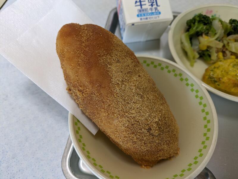今日は、パンの中でも子どもたちが大好きな揚げパンでした。一つ一つの揚げパンを絶妙のきな粉と砂糖と塩加減で作られた横島小の揚げパンは、最高においしい揚げパンでした。