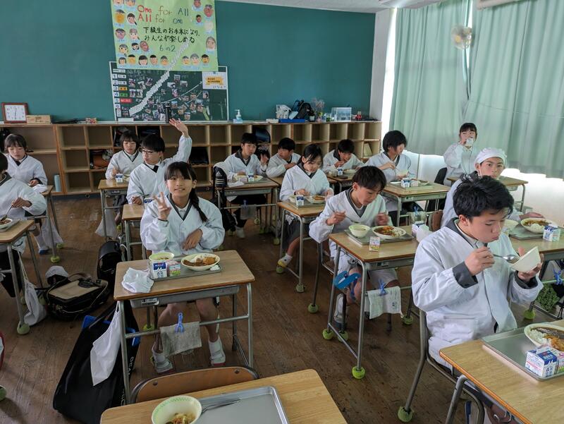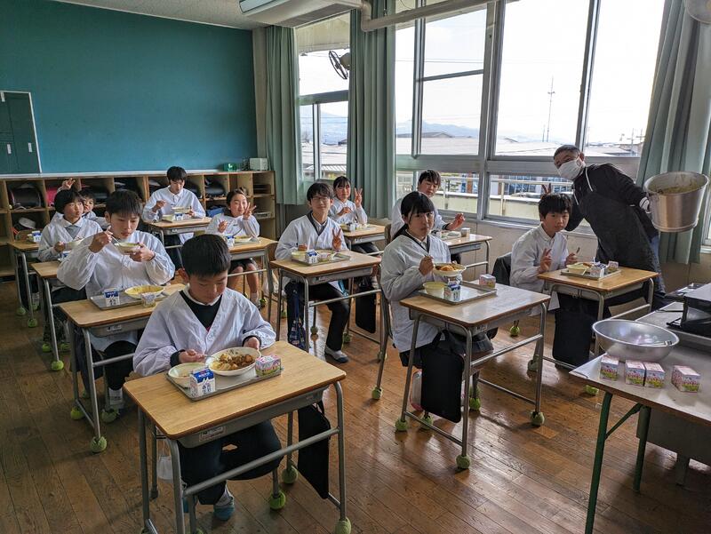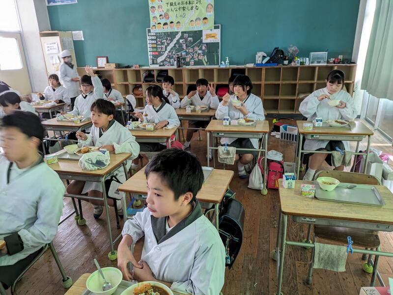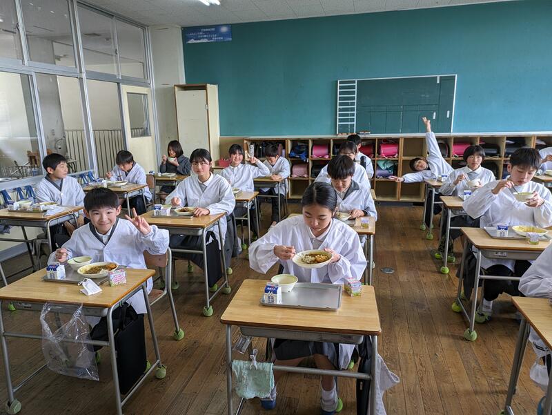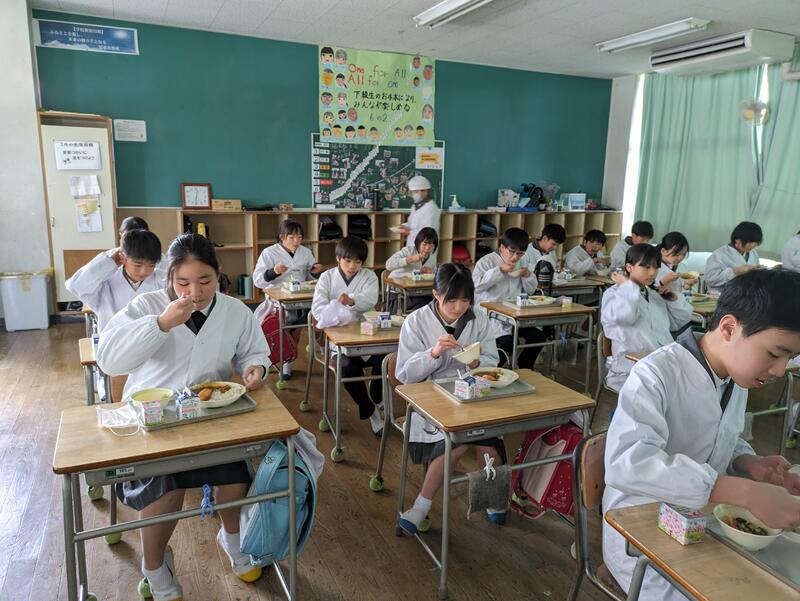 横島小のかき卵汁は、昆布と鰹の出汁がとてもよくて、流石のおいししさでした。卵アレルギー対応としてもしっかりと片栗粉でとろみをつけてありました。給食の先生方の心使いに感謝します。