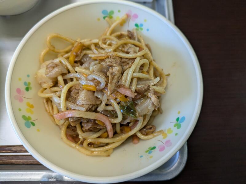焼きそばも子どもたちが好きなメニューで、ほどよい食感の麺に、豚肉と竹輪、人参、玉ねぎ、もやし、ピーマンを子どもに合わせた焼きそばソースで炒めてあり、とてもおしさかったです。できたてを食べられるのが、さらにおいしさを増していました。