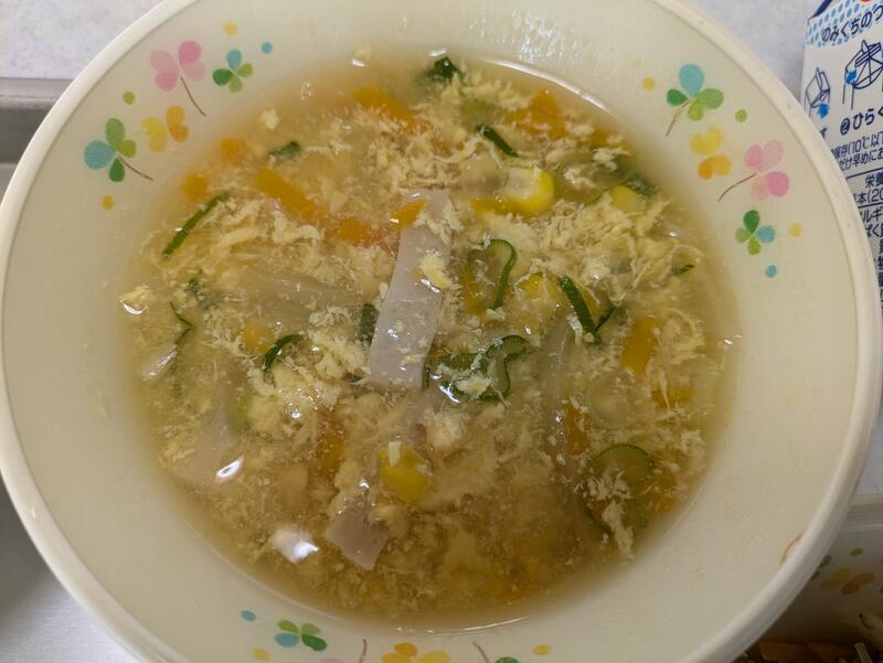 今日の中華スープは、野菜の旨味と春雨がスープになじんで、のど越しもよく、食欲が湧いてくるおいしさでした。