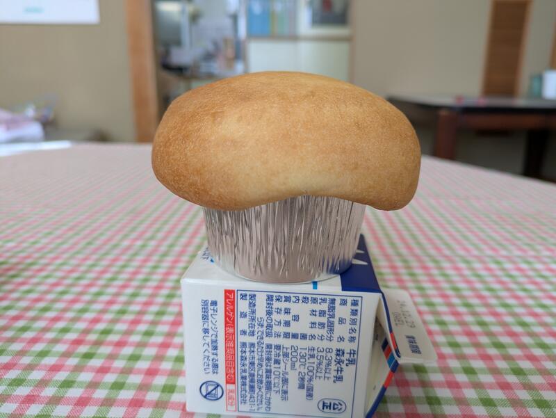 おかげで温かくてクリーミーなおいしいスープとそれを覆うような柔らかく、きのこ色のパンが、優しいきのこのように見える横島小一番人気のきのこスープができあがるのです。
