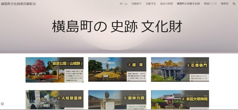 横島町公民館の入り口付近に史跡マップが新しく設置されています。文化財保存顕彰会のホームページと合わせて文化財や史跡のことを学ぶことができます。