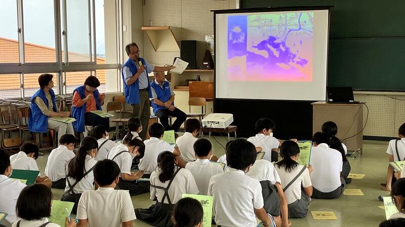 13日(火)5・6校時 6年生が総合的な学習の時間で「横島干拓」について学びました。講師として、横島町文化財保存顕彰会の皆様4名が指導してくださりました。横島町が、昔海に浮かぶ孤島だったことに皆驚いていました。先人の苦労や努力によって町ができてきたことを学ぶのは、とても貴重な学びとなると思います。