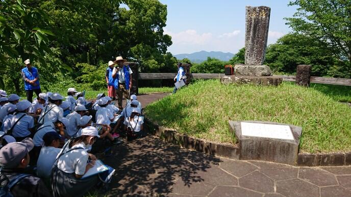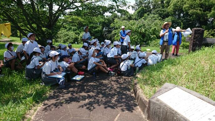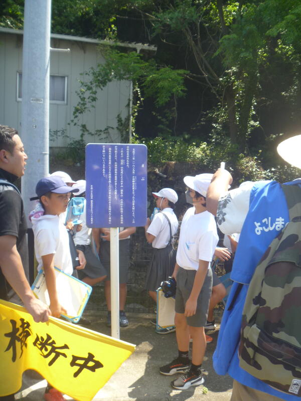 梅雨の晴れ間で、雨の心配はありませんでしたが、逆に、熱中症を心配するような暑さの中で6年生の子どもたちは、横島町文化財保存顕彰会の方々の愛情のこもった丁寧な説明をしっかりと聞き、自分たちの町の歴史を学ぶことができました。子どもたちは、自分のふるさとの歴史や人々の暮らしに思いをはせて、横島町に対する愛情と誇りを持つ学習ができました。