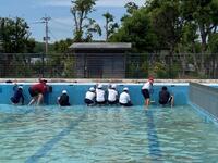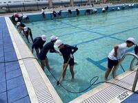 ブラシやたわしでプールの中を磨く人、トイレや更衣室の掃除をする人、靴箱をきれいにする人、プールサイドを磨く人、それぞれの役割を果たし、見る見るうちにプールきれいになりました。