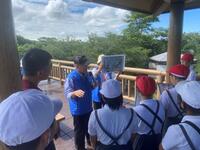横島文化財保存顕彰会の皆様にお願いをし、展望公園から校区の様子を見学したり、石塘に行って実物を見ながら当時の工事のことを聞いたりしました。