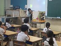 今日の朝の時間は、PTA読み聞かせ部の方々による読み聞かせでした。大型絵本や実物投影機を使って、子ども達に、本の世界観が伝わるように工夫されていたので、子ども達も惹きこまれていました。