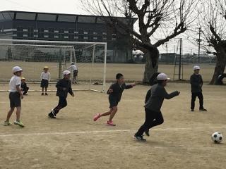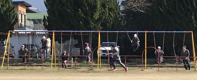 1月20日(月) 運動場では、サッカーや鬼ごっこ、雲梯で楽しそうに遊んでいました。