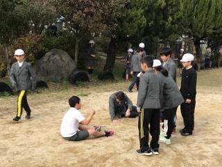 学びの森で3つのグループが鬼ごっこをして遊んでいました。