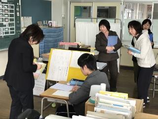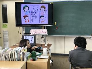 1月20日(月)の2校時、かがやき学級の研究授業を行いました。1名しかいないので、写真にあるように、4名の架空の友だちが意見を述べて、その意見を参考にしながら自分の考えを深め広げる工夫がされていました。