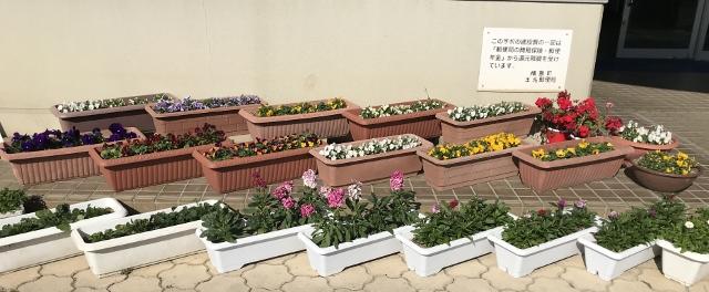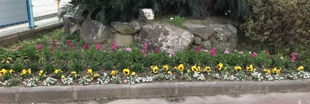 1月21日(火) 今日の昼間、汗ばむほどの良い天気でした。学校の花壇に植えている花もきれいな花を咲かせつつあります。