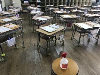 5月15日(金) 朝の教室の様子です。担任の先生方が、連絡や指導が短時間で進められるように工夫してありました。