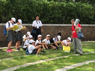 9月12日(木) 平和学習の後は、フィールドワークでした。強い日差しの中汗ビッショリになって活動していました。流石に終わる頃には疲れた表情を見せていましたが、最後まで頑張りました。