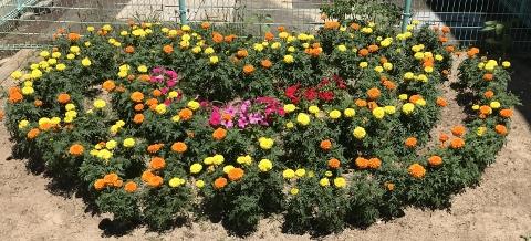 5年生の花壇が、ユニークです。ハートの形をしています。「共感力」につながる思いやりや優しさを表しているのでしょうか?