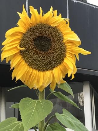 1月13日(月) ヒマワリの花はひとつの花ではなく、多数の花が集まって、一つの花の形を作っています。このような花の着きかたを頭状花序(とうじょうかじょ)と呼びます。ヒマワリの花の部分に見える黄色の外側の幅広いところを舌状花(ぜつじょうか)と呼び、虫を引きつける役目があるかと思います。中心部の花びらの無い部分を筒状花(とうじょうか)または管状花(かんじょうか)と呼びます。たくさんあるこの筒状花が受粉して種子に成熟します。写真は、筒状花(とうじょうか)が広がっている様子です。