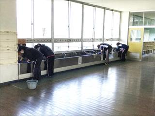 4月22日(水) 調理員さんや支援員さんが、学校をぴかぴかにしてくださっています。普段はできない窓ガラスや、流し磨きなどです。大変ありがとうございます。写真は、流し磨きの様子です。