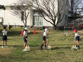 11月27日(金)朝、登校指導の後、児童玄関前に散らばっていた落ち葉を集めていると2年生の女の子が、手伝いますと声をかけてくれました。その後、グリーンステージの落ち葉集めを一緒にしてくれました。
