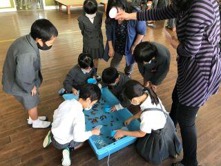 11月10日(火)今日は、3校時に1・2年生が、金魚すくいの体験をしました。長洲町のご協力で金魚すくいのセットを提供していただきました。子供たちは、大喜びで取り組んでいました。