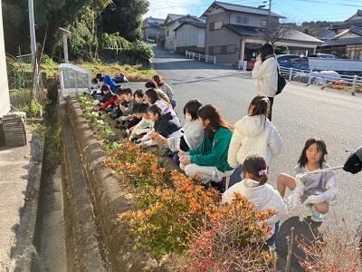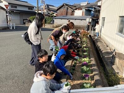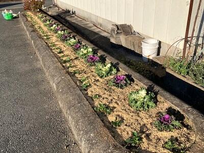 大園区では、子供たちが地域花壇に花を植えてくれました。子供会の協力で実現しました。協力ありがとうございました。11月に葉ボタン、そして12月にパンジービオラを植えることができました。