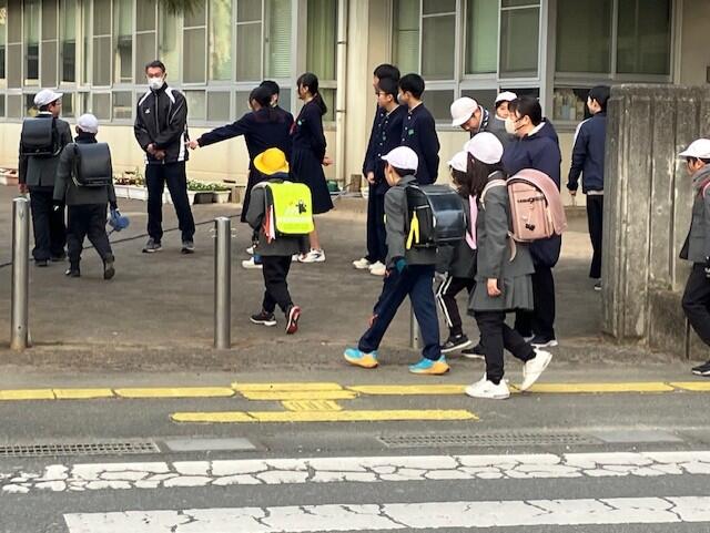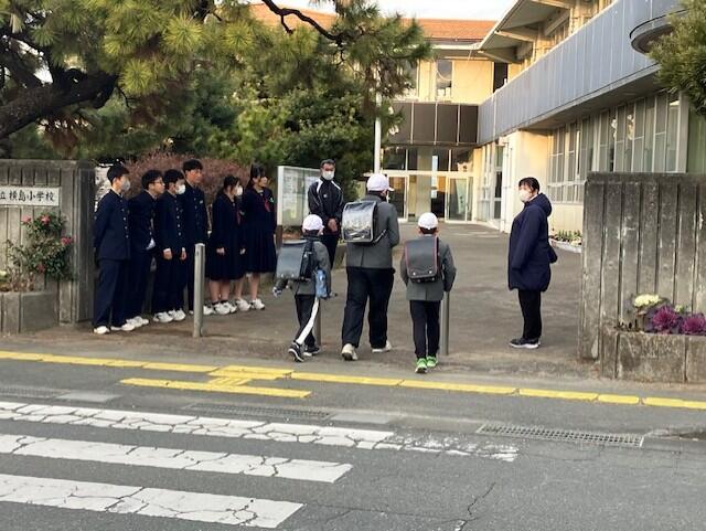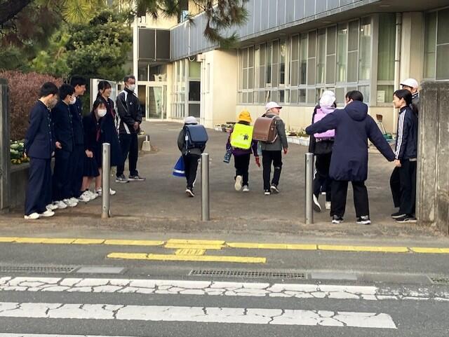 1月13日(火)朝の登校指導の様子です。今日は、民生委員と主任児童員さん方が指導してくださっていました。いつもありがとうございます。