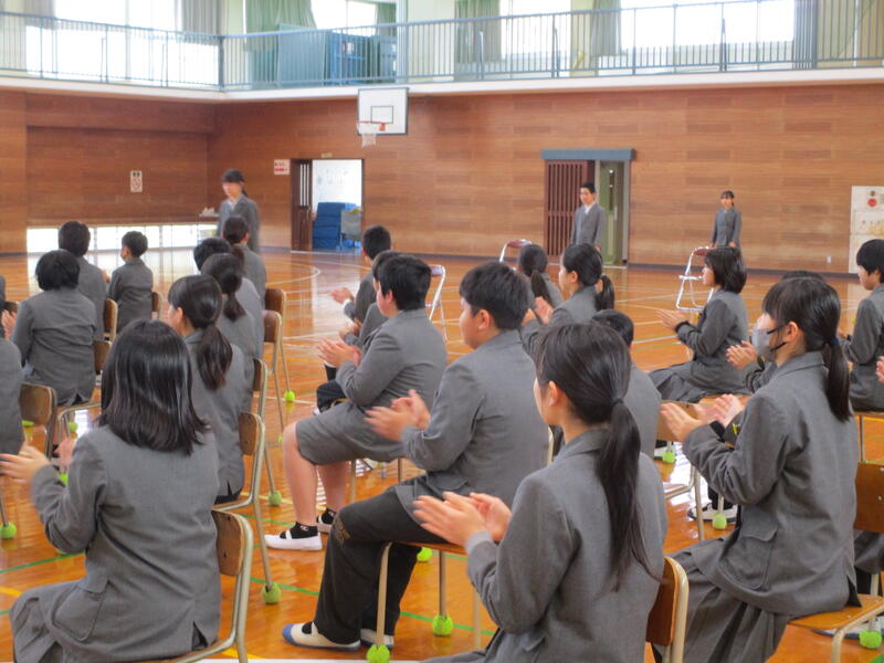 また、校長先生からは「笑顔の登校、感謝の下校ができましたか。来年度は人とつながる力をつけてほしい。世界中で紛争が起こっているが、人とつながる力を身につけると傷つけ合うことがなくなります。」という話があり、みんな真剣に話を聞いていました。