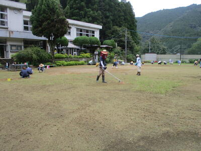 ご協力のもと、運動場および学校周辺をきれいにしていただきました。