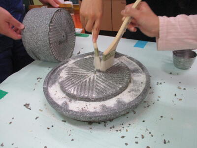 「実は少しずつ入れないと、石うすがグラグラするよ!」や