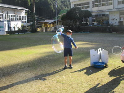 大きなシャボン玉ができ、とても楽しそうな子どもたちでした。