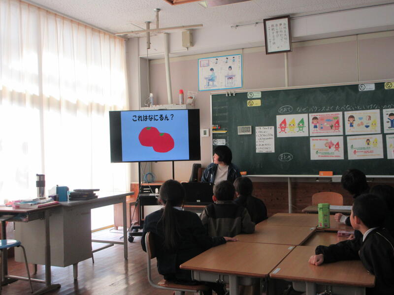 1月24日から30日まで全国学校給食週間でした。この週間に合わせて担任が行う食に関する指導の時間に養護教諭も参加し、栄養面や食事の大切さについて話をしました。食べ物は赤・黄・緑に分けられて、バランスよく食べることが大切ということと赤黄緑の食べ物クイズなどをしました。給食時にも食材を見ながら『これは赤かな?」などと考えながら食べていました。好き嫌いなくバランスよく食べて、これからも元気いっぱい過ごしてほしいです。