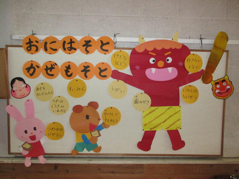 保健室の掲示板が節分にかわりました。