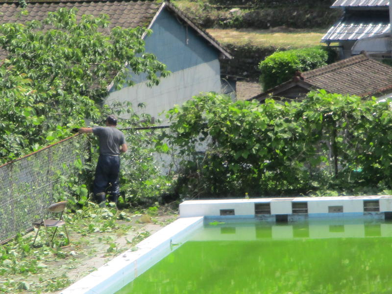 プールサイドの修理の前に、草払いをしてくれた古里建設さん。
