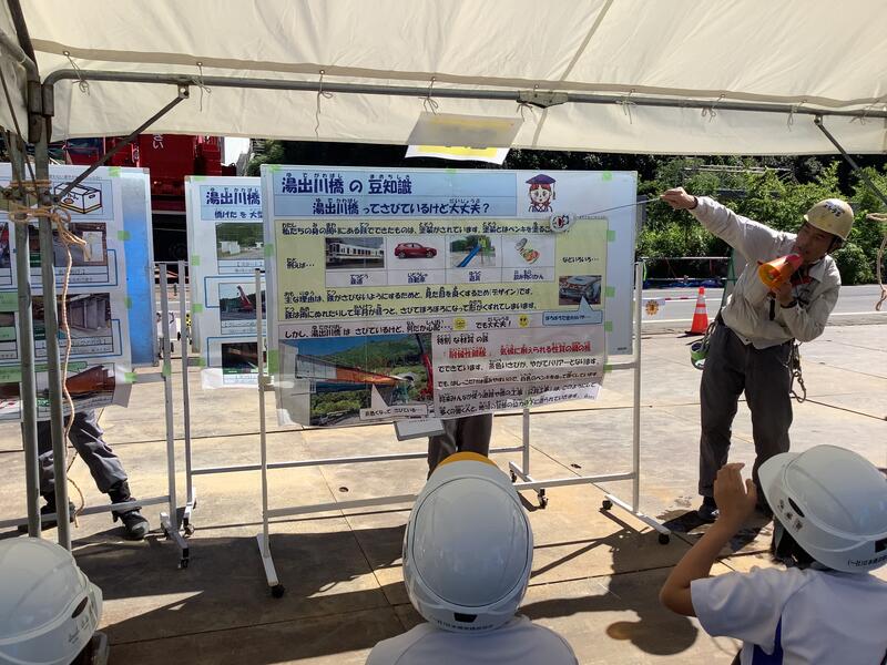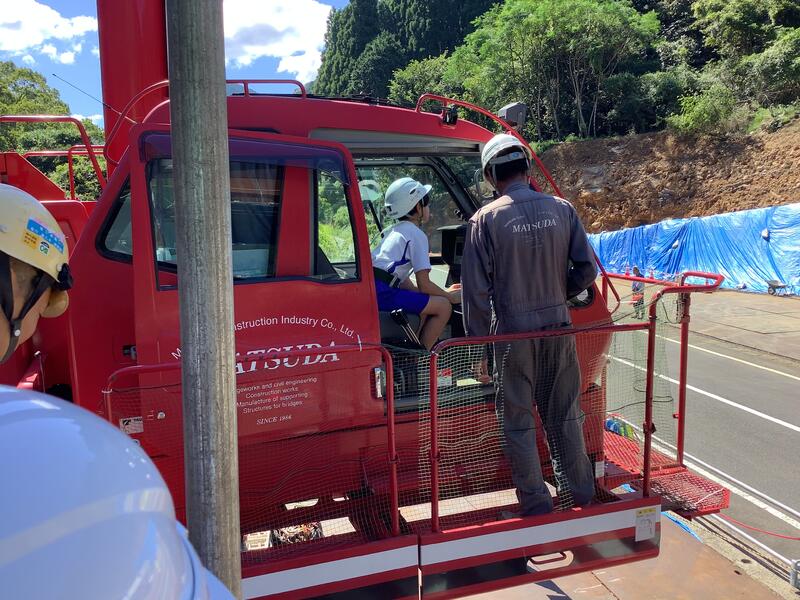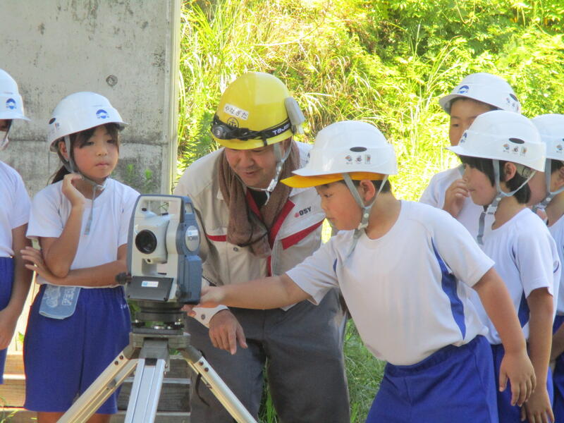 13日(金)大島造船所の皆様のご厚意により、湯出川橋上部工事の現場見学会を開いてくださいました。身近な公共工事への理解や工事関係者の方への感謝等、児童一人一人が勤労観や職業観を育む機会となりました。事業・工事の概要説明や測量体験・高所作業車試乗・大型重機(550tA/C)の操縦席試乗等の体験もあり学びの多い有意義な時間となりました。