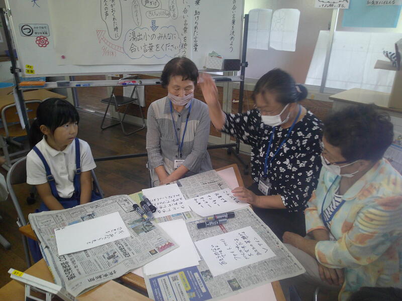 19日(木)第2回鶴の子スクールを実施いたしました。今回は、国語の授業を通して、地域の方とともに学習をし、地域の方へも自分の考えを互いに伝え学び合う楽しさ味わい、地域の方と一緒に活動し交流を深めました。
