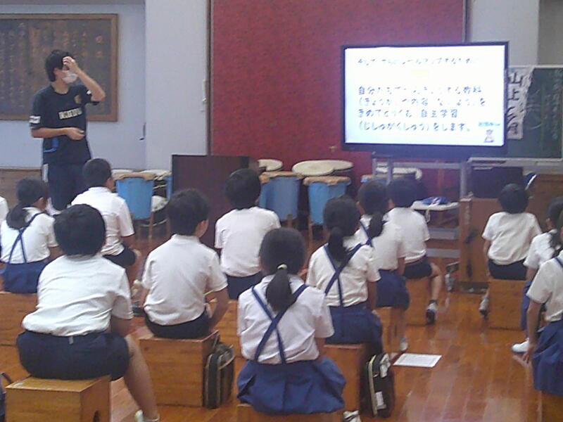 9月の児童集会では、「なんで!勉強するの?」「なんで同じ計算を何回もするの?」「なんで宿題はしないといけないの?」等について研究主任が全児童に分かりやすく話をしました。