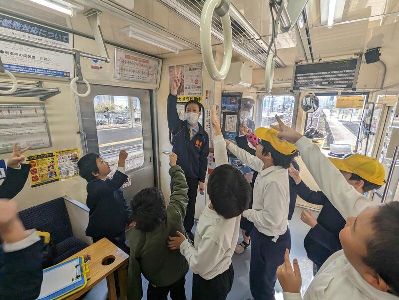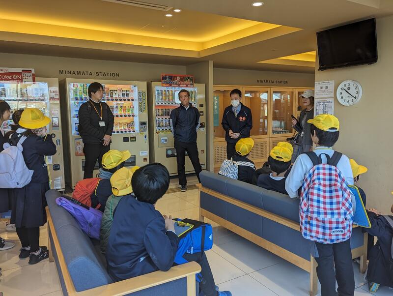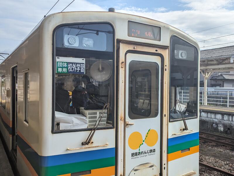本日、おれんじ鉄道さんのご支援により(スクールトレイン事業)水俣駅より出水駅まで鉄道の学習に出発進行!