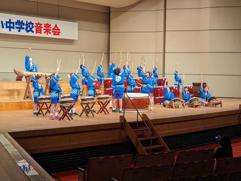 14日(水)本日、水俣市小中学校音楽会が開催され和太鼓による「七滝太鼓」を披露しました。