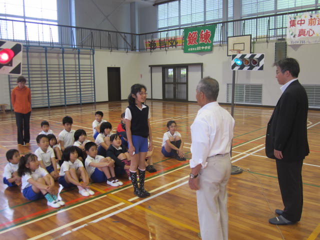 5月7日(木)交通安全教室を実施しました。水俣市防災生活課から講師をお招きし、ビデオ視聴、講話、実技指導をとおして、事故に合わないように気をつけることを学びました。翌日の登校では、さっそく学んだことを生かして、横断歩道を渡ることができました。これからも気をつけてほしいと思います。