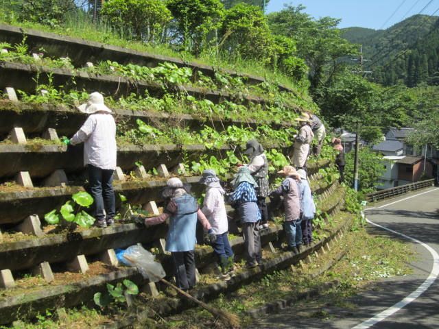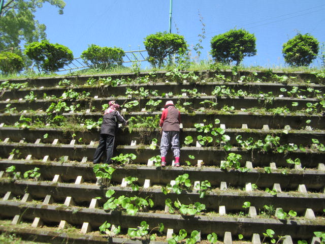 5月21日(木)地域の婦人会の皆様(14名)に正門付近の除草作業をしていただきました。高い所の作業もありましたが、手際よくきれいにとっていただきました。毎年大変お世話になりとてもありがたいです。