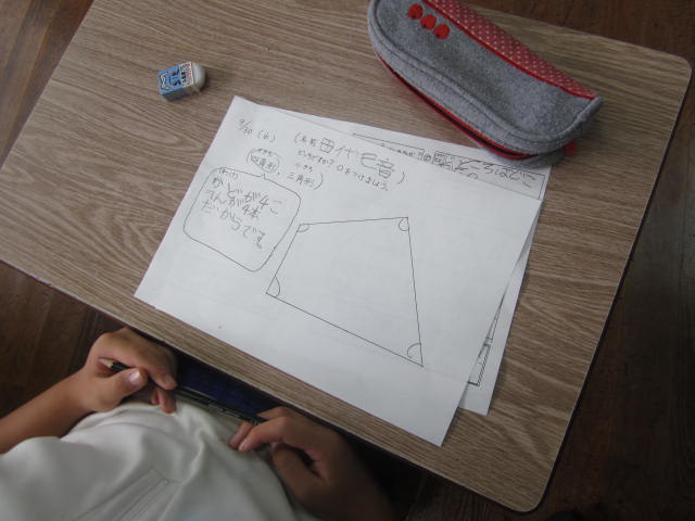 9月30日(水)たんぽぽ学級で算数の研究授業がありました。三角形と四角形の性質を理解する授業でした。くじ引きをして、四角形は大吉、三角形は小吉に分ける等、子どもたちは、楽しく授業に参加することができました。