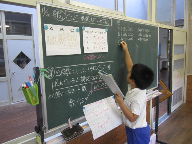 11月20日(金)5・6年生のクラスで算数の研究授業がありました。5年生1人、6年生