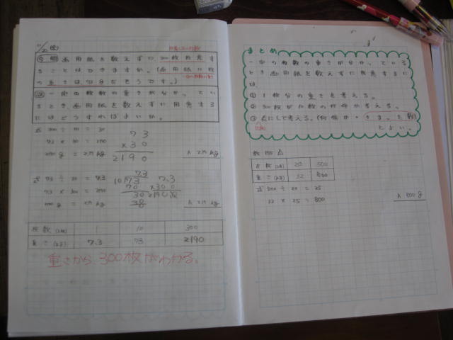 4人、自力で考えたり、話し合ったりして、課題を解決していきました。ノート文字もとても