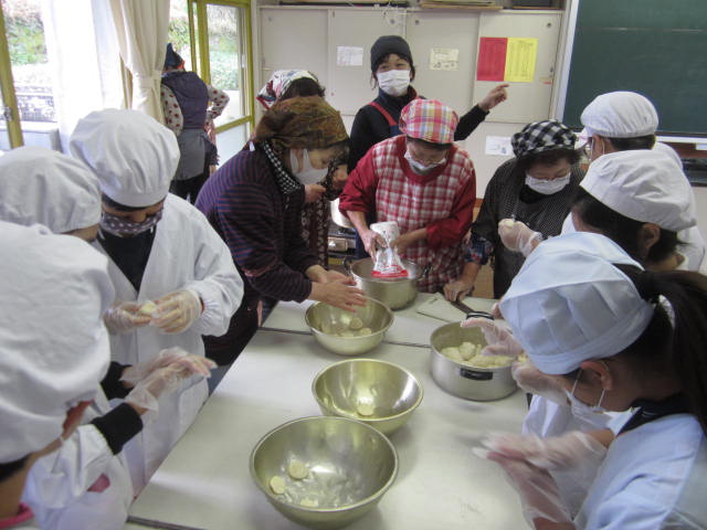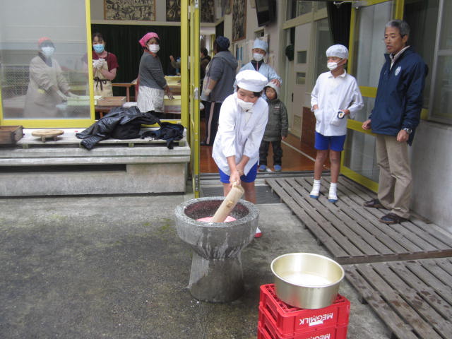 感謝祭を行いました。保護者の皆さんにはもちつき、婦人会の皆様にはだご汁づくり