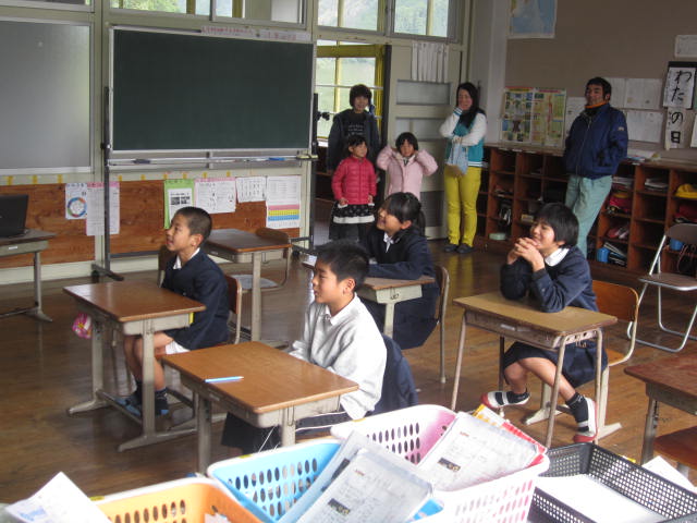 頑張ったことや反省点を発表しました。大掃除をした後、各教室では、担任の