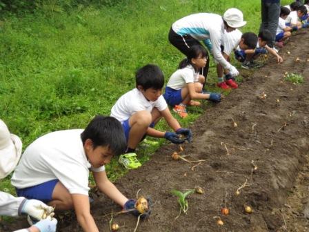 5月13日(金)サラ玉の収穫をしました。今年は、天候の影響か小ぶりの玉が多く、収穫量も昨年の三分の一ほどでした。小さくても味はきっとおいしいと思います。