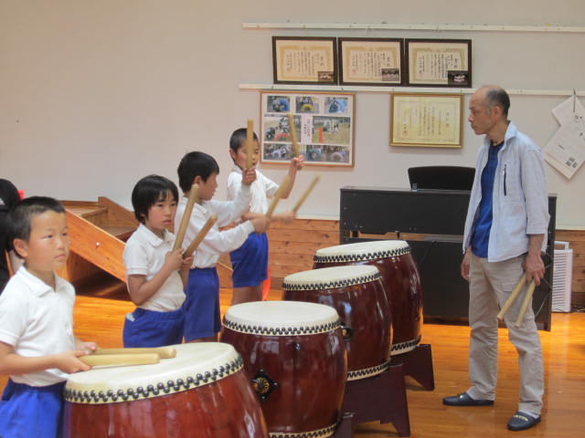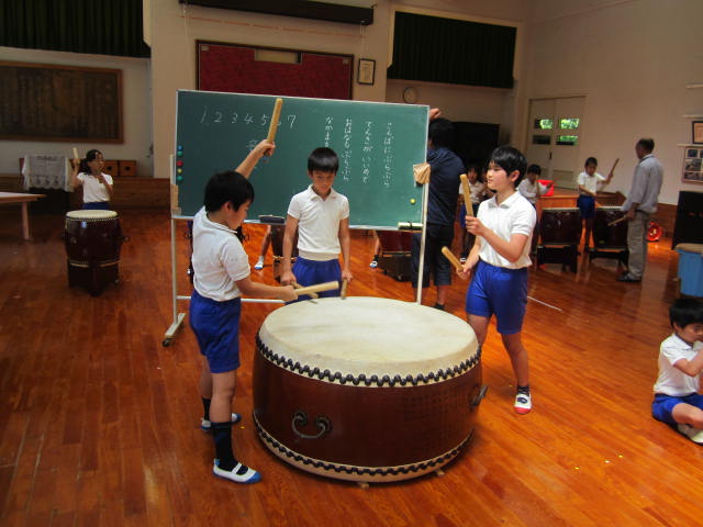 5月14日(土)6月の田植えに備えて、もみまきをしました。今年もいつもお世話になっている地域の方に、もみのことやまき方を教えていただきました。丈夫な苗に育つようにお世話をしていきます。その後、七滝太鼓の練習をしました。こちらも毎年お世話になっている地域の方にたたき方を教わりながら一生懸命がんばりました。