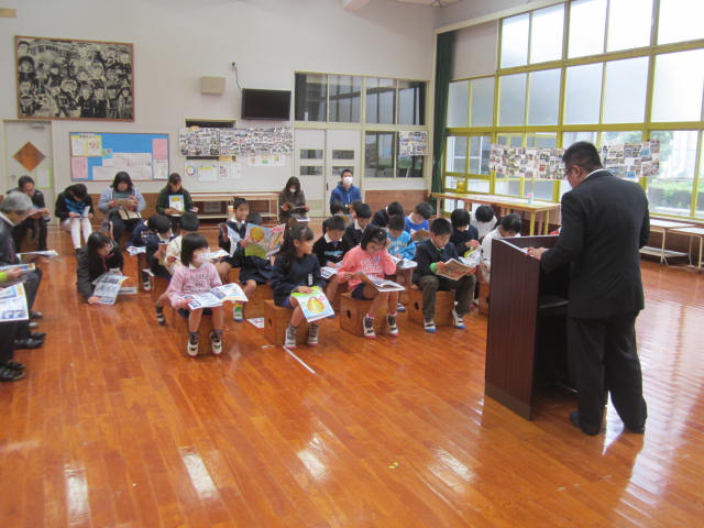 1月25日(水)児童集会で、毎日元気なあいさつができる児童を2名
