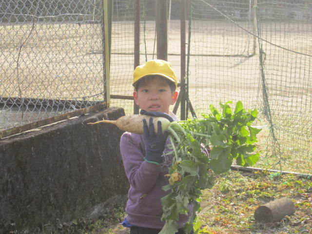 1月17日(火)ひまわり・たんぽぽ学級の子どもたちが、だいこんの