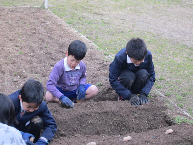 3月8日(水)ひまわり・たんぽぽ学級の子どもたちが、ジャガイモの