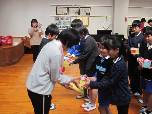 応援する気持ちがこもった贈り物が渡されました。もうすぐお別れです。