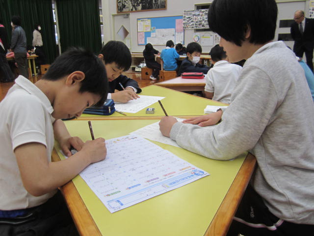先生にはたくさんほめていただき、子どもたちは毎回意欲的に書写に